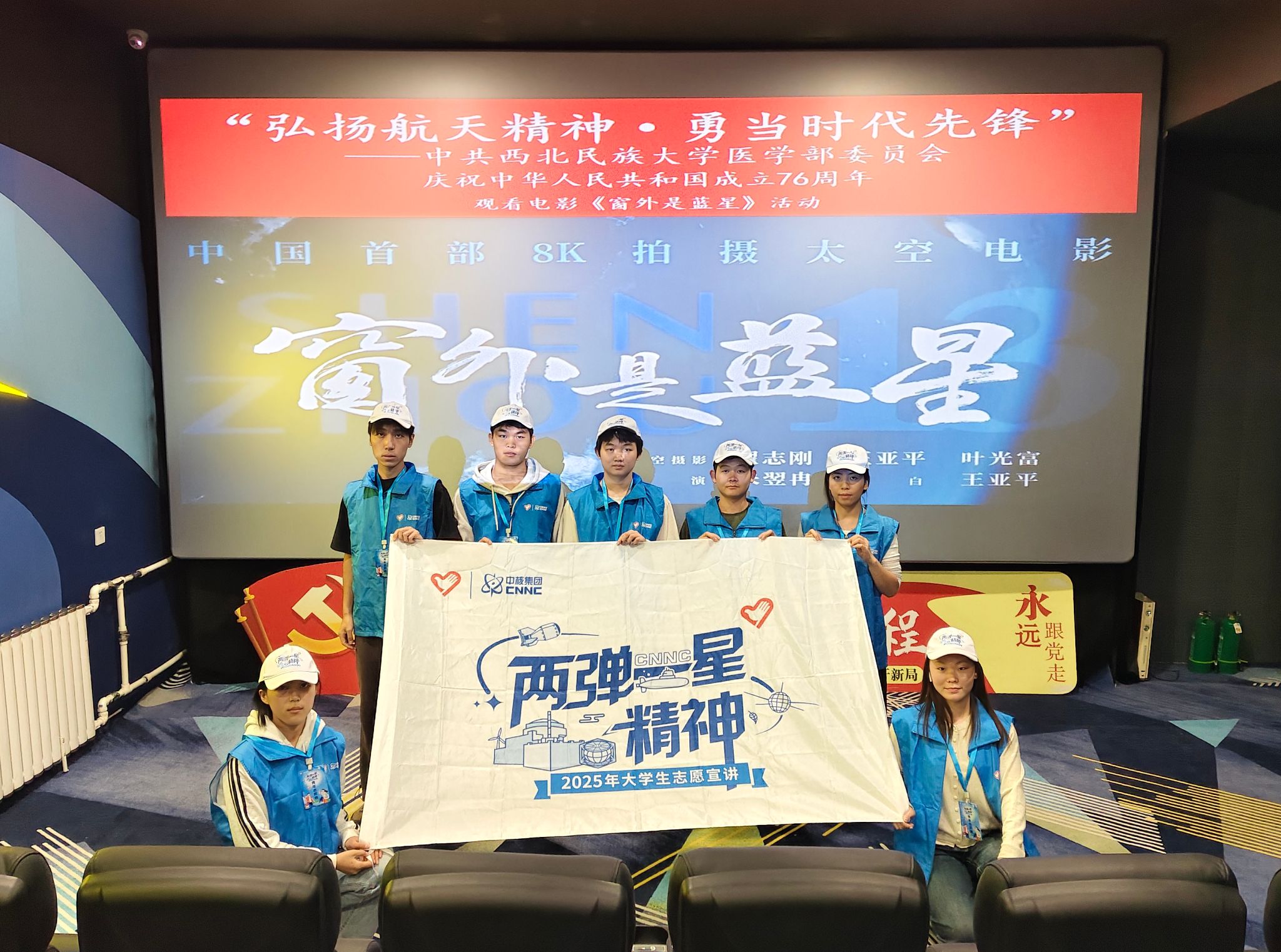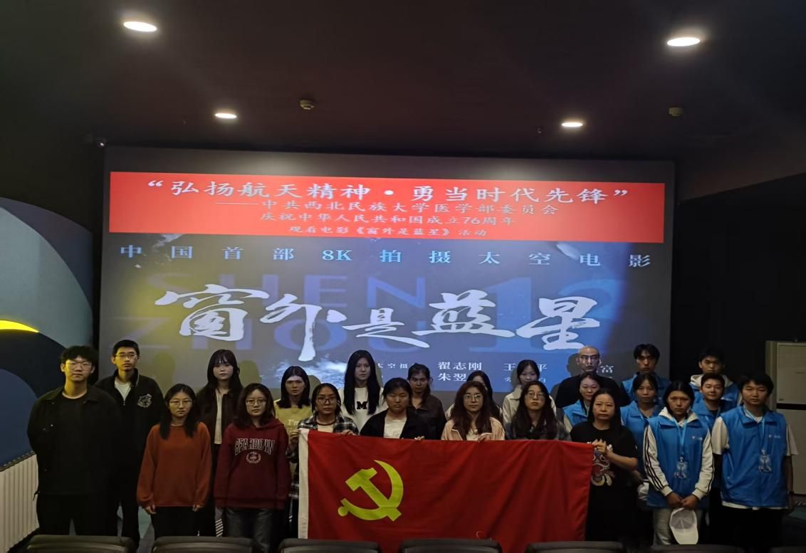 近日,医学部党委组织 30 余名师生党员,与医路铸魂宣讲团(全国大学生“两弹一星”精神志愿宣讲团)的同学共同集中观看航天题材爱国主义教育影片《窗外是蓝星》,进一步激发党员及宣讲团成员的爱国热情与使命担当。