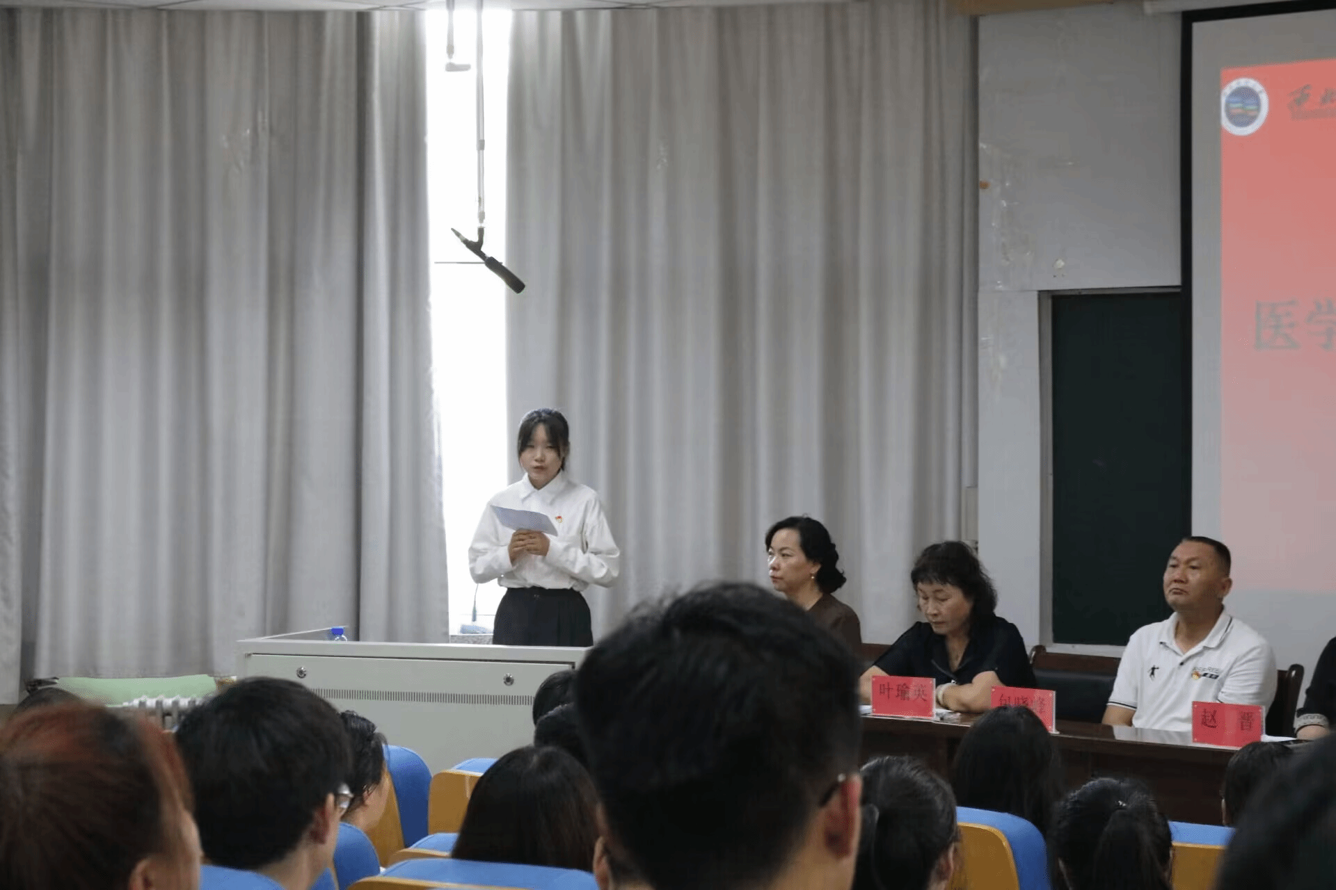 常务副主任、党委副书记赵晋同志宣读《医学部党委表彰优秀党员的决定》,党委委员为获得优秀党员的代表予以颁奖。随后,全体起立,奏唱《国际歌》;组织员包晓峰同志宣读了2023年度上半年发展预备党员名单以及转正党员名单;党委委员王小恒带领新发展党员宣誓、老党员重温入党誓词;党委委员为新发展党员佩戴党员徽章。预备党员代表宋丽娜同志作表态发言,她表示将牢记入党誓词,坚定理想信念、巩固专业知识、积极投身实践,始终以优秀党员的标准严格要求自己,今后努力为国家医疗卫生事业的发展贡献自己的力量。