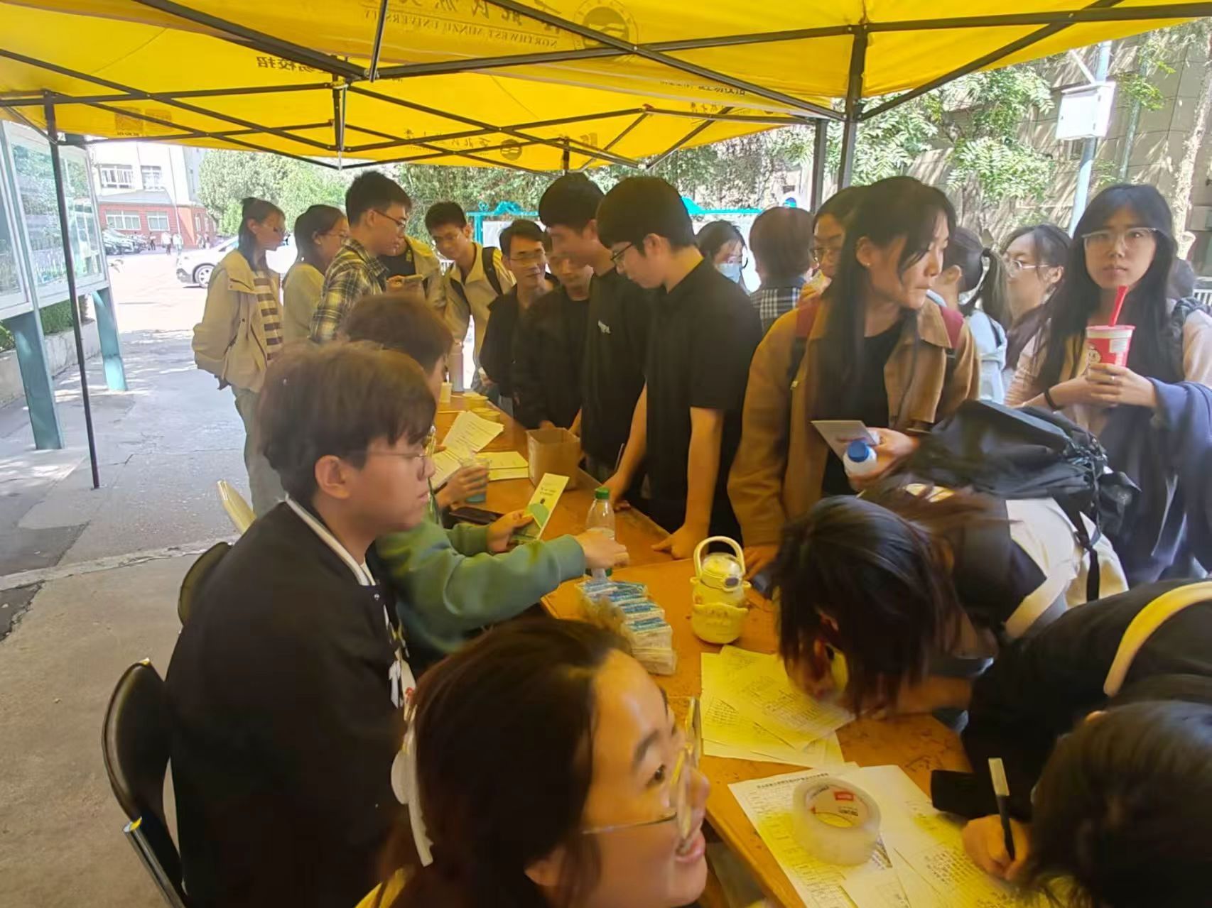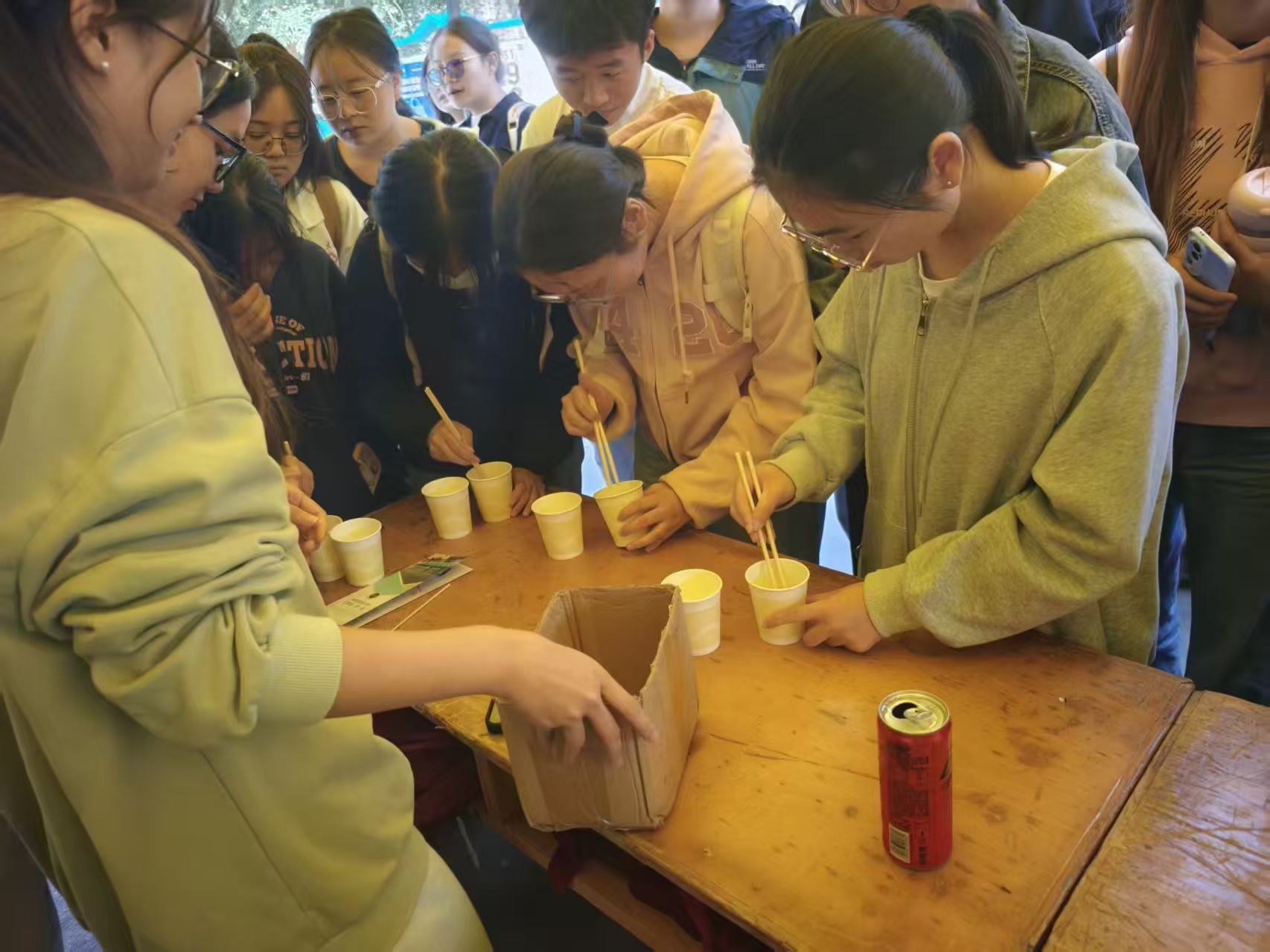 活动当日,志愿者有序分发口腔健康科普手册,以热情耐心的态度,细致科普口腔护理相关知识,从日常清洁要点到健康习惯养成,层层引导,帮助大学生树立科学的口腔健康卫生观念。随后开展的夹豆子游戏与口腔知识竞赛,迅速吸引众多学生参与。一分钟夹豆子环节,同学们你追我赶、互不相让,现场氛围热烈;“三连问”形式的口腔知识竞赛更是如火如荼、热火朝天,大家踊跃抢答。工作人员全程耐心讲解活动规则,及时维护现场秩序,整场活动井然有序开展。