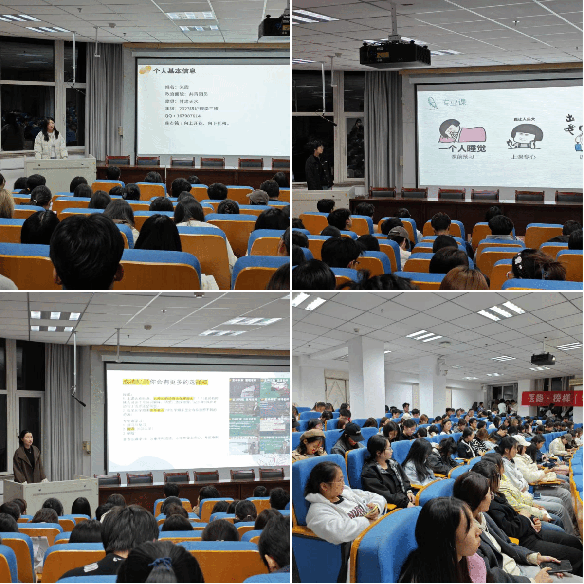 在 “医路・榜样” 第十四期交流会上,李永慧分享了主动学习的方法,建议大家带着问题听课、敢于提出疑问,还可以通过小组讨论、“奥曼学习法”等方式主动梳理和输出知识;黄欣结合护理专业特点,强调理论学习要和实践相结合,情感表达与沟通能力对护理工作的重要性;马宣梦鼓励同学们在学好专业课的同时,积极参与社团活动和科研入门实践,通过多方面实践提升自己。