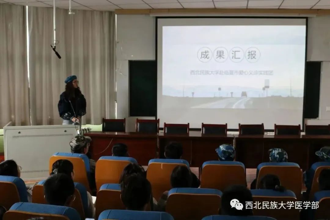 与此同时,医学部关爱老年人身心健康爱心服务实践团、“三高”防治科普实践团、爱心义诊实践团等医疗服务实践团的代表们,分别讲述了他们在甘肃省临夏市、东乡县、积石山县,甘肃临潭,河南栾川,四川南充等地耐心为当地群众免费量血压、测血糖,进行身体检查志愿服务实践活动。