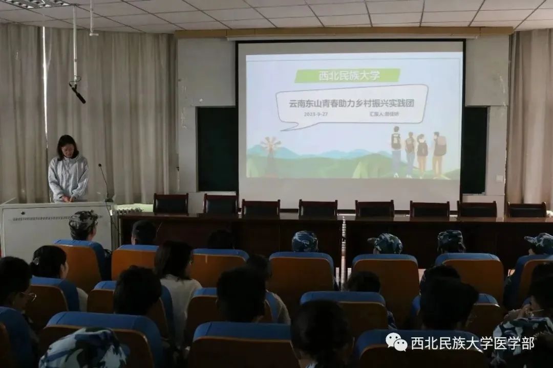 普佳娇同学代表云南东山青春助力乡村振兴实践团作了汇报,他们深入云南大山深处扎实开展中药材种植推广调研,实践团师生对如何利用自然条件和学科优势,大力发展中药材种植特色产业,加强中药材药用价值提升研究有了更加深层次的思考。