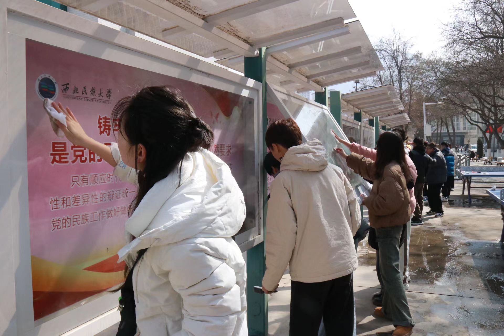 “万名青年学雷锋”志愿服务活动。活动现场,志愿者们分组行动,密切配合,有的清扫地面,有的擦拭公共宣传栏,有的则负责教室整洁,大家热火朝天地为共建美丽校园贡献自己的一份力量。
