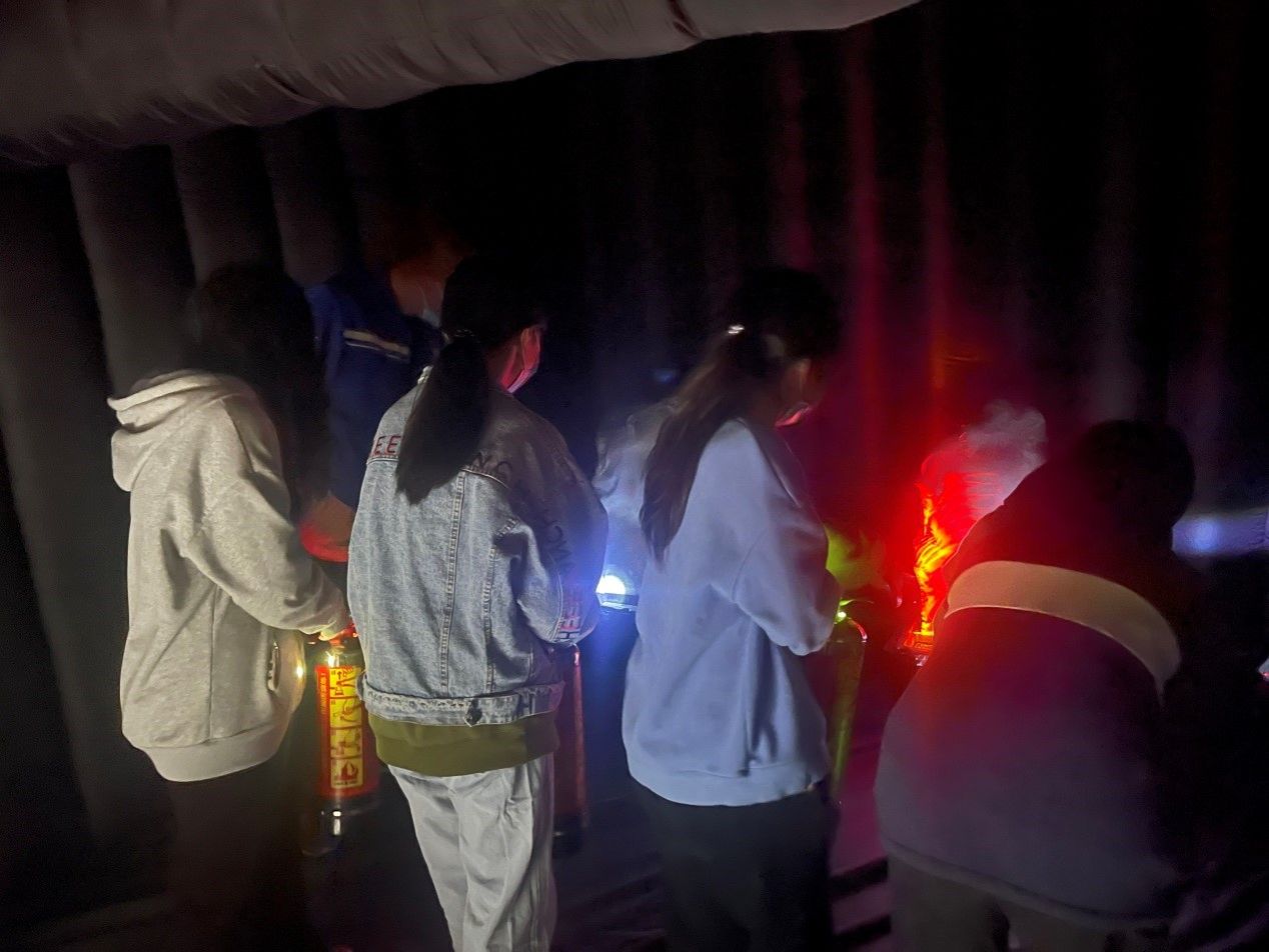 保卫处消防部门专业人员着重讲解了失火后逃生自救的技能以及具体措施,同时在烟雾逃生帐篷的真实模拟下重现了火灾现场,使师生了解烟雾的危害性,在模拟浓烟弥漫的环境中,克服恐慌心理,体验正确的逃生自救方法。训练后,专业人员科普了消防安全知识,并组织师生员工进行灭火实操体验,同时进行安全保障和灭火知识要点指导。