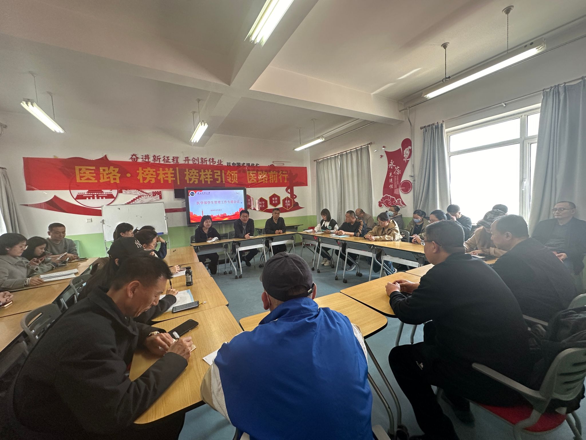 为进一步提升医学部辅导员和班导师的工作能力和育人水平,确保学生管理工作的规范化和高效化,3月28日13:00,医学部召开辅导员班导师专题培训会。医学部党委书记、党委副书记出席会议,共计40余名辅导员和班导师参加了此次培训。