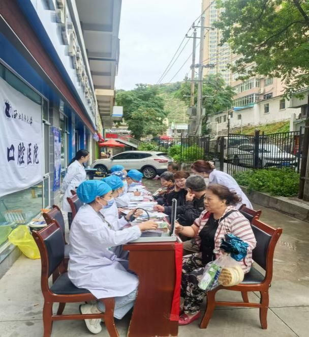 (榆中校区)四食堂门前进行口腔义诊及宣传活动。前来咨询的师生络绎不绝。活动现场发放了口腔保健宣传册,医生为师生介绍了常见口腔疾病形成的原因及与防治方法,引导师生养成按时刷牙、定期洗牙等良好口腔卫生习惯,帮助群众掌握基本的口腔健康保健知识和技能,对口腔健康问题针对性的给出治疗建议。