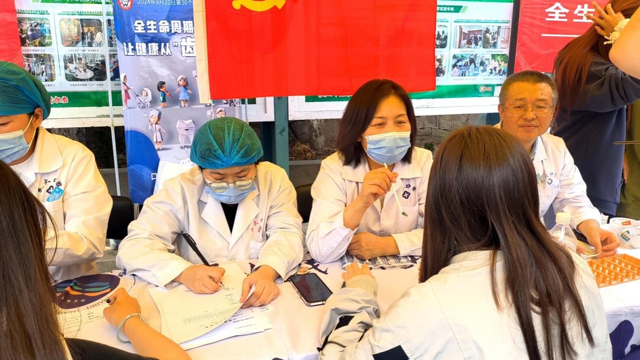 2024年9月20日10:30-12:30在民泰公寓楼前/口腔医院门前进行口腔义诊及宣传活动口腔医院的各个临床科室的老师进行免费口腔咨询以及检查活动;向过往人群发放宣传单和口腔保健用品,呼吁群众重视口腔健康,增强口腔健康素养。