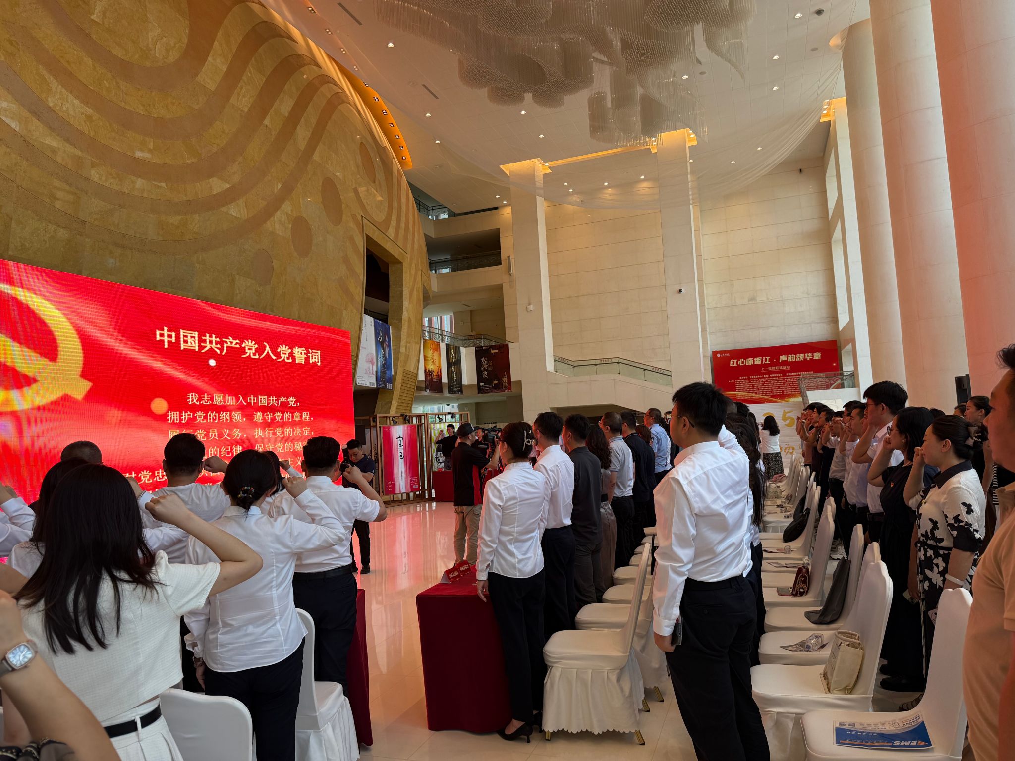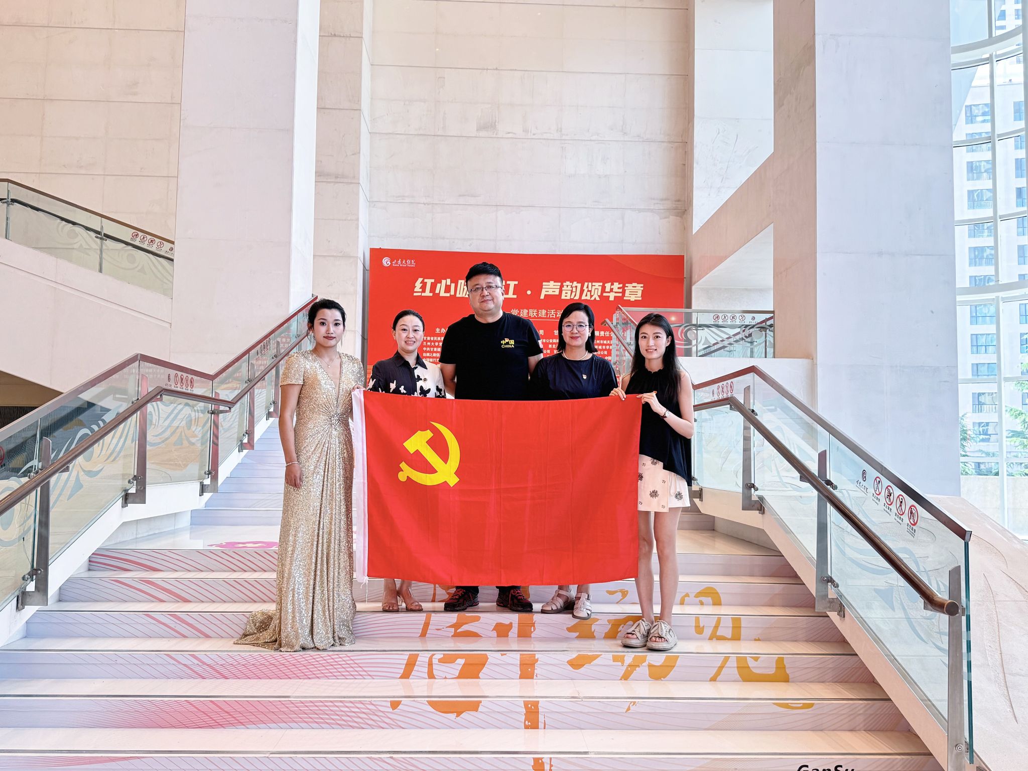 师生党员代表走进甘肃大剧院,参与“红心咏香江·声韵颂华章”庆“七一”党建联建活动。此次活动由甘肃大剧院联合在兰各大高校、艺术院团、国有企业等多单位共同举办。