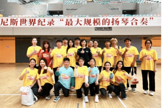 师生通过赛前国家专业级教师团队和吉尼斯督察团队的选拔,与来自12个国家和地区的扬琴艺术家、专家教授、演奏家、青少年儿童一起参加了“最大规模的扬琴合奏”世界吉尼斯挑战活动,共同演绎和谐之声,歌颂和合之美。