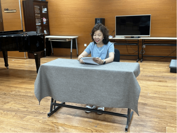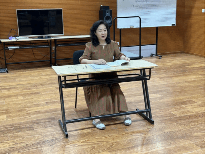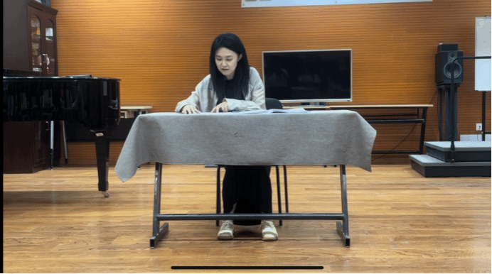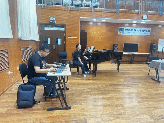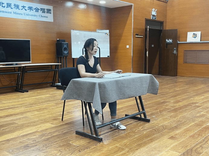 图为王茜燕老师进行声乐课堂基本环节以及舞台实践课程授课