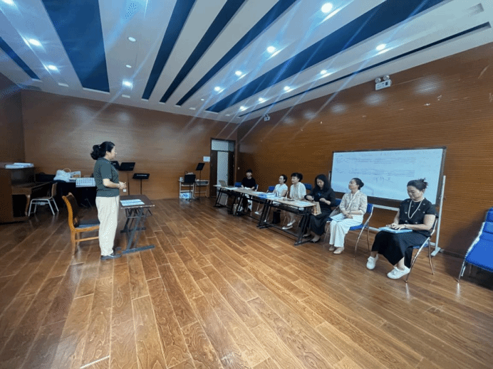 图为李晓玲老师进行声乐课堂教学设计的讲解