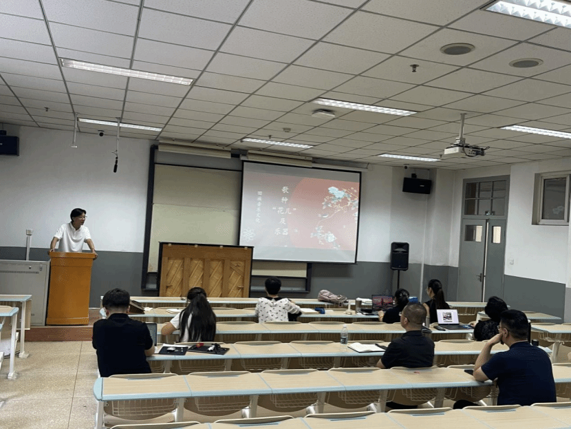 图为马希刚老师进行《西北少数民族音乐文化》课程说课