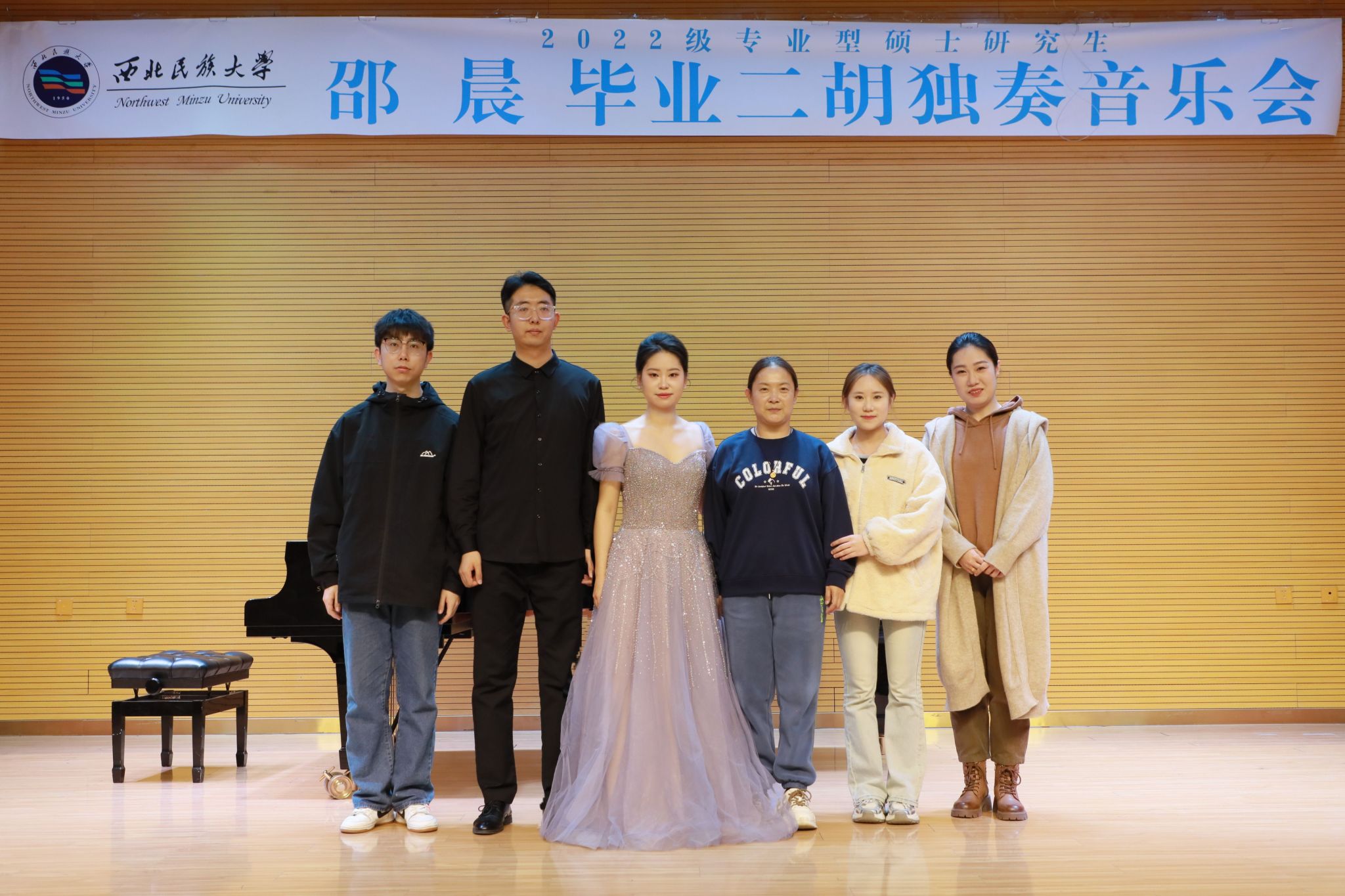 2024年10月30日,2022级专业型硕士研究生邵晨成功举办毕业二胡独奏音乐会。整场音乐会历时一小时,共演奏《初心》《江河云梦》《月夜》《阿曼尼莎》四首作品。本场音乐会艺术指导由史洋老师担任,主持人陈恒泰;参加本场音乐会的评委老师有刘慧、东保吉、阚鹏。