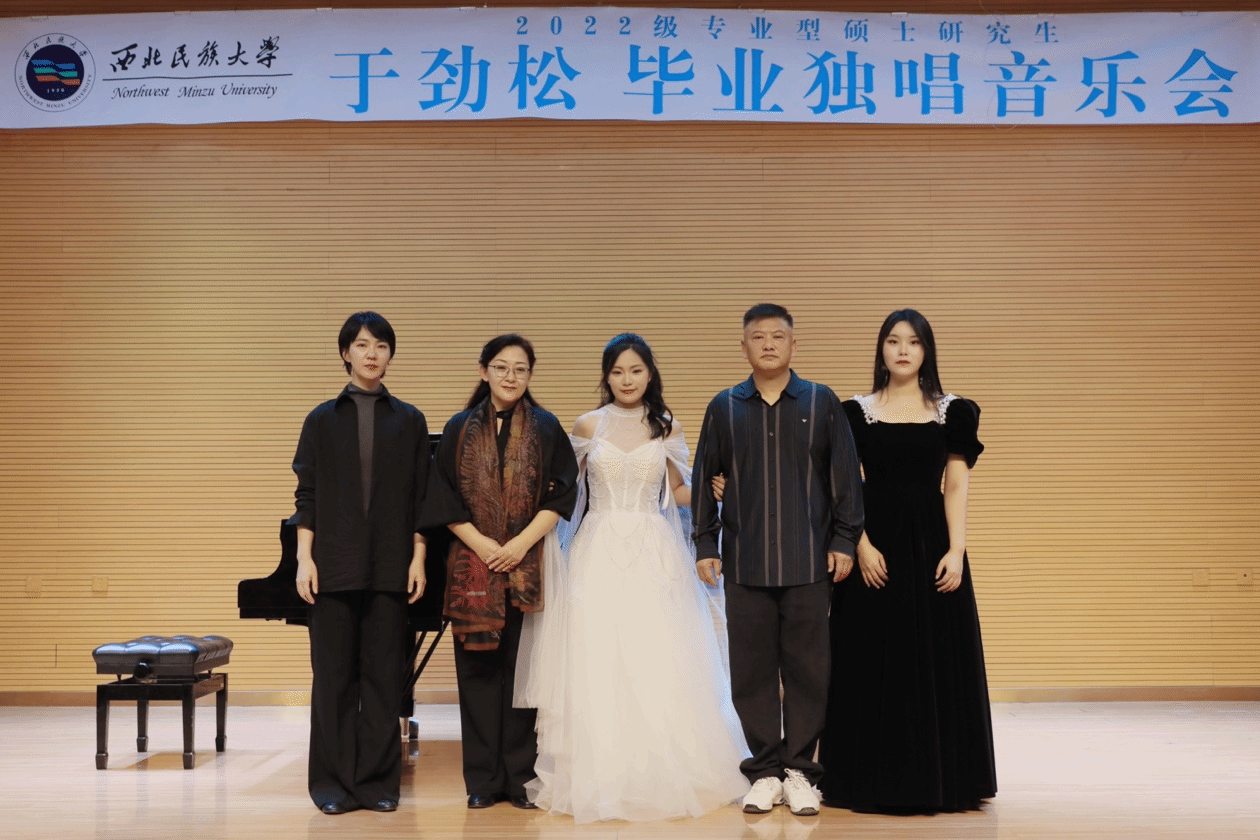 2024年11月1日,2022级专业型硕士研究生于劲松举办毕业独唱音乐会。整场音乐会历时一个小时,共演唱了《我亲爱的》《我心里不再感到青春火焰燃烧》《你们可知道》《多么幸福能赞美你》等十三首作品。其中外国作品九首,中国古诗词艺术歌曲两首,豫歌一首,艺术歌曲一首。本场音乐会由艺术指导由张金松老师担任,评委老师常虹、何英琴、杨扬。主持人刘莎。