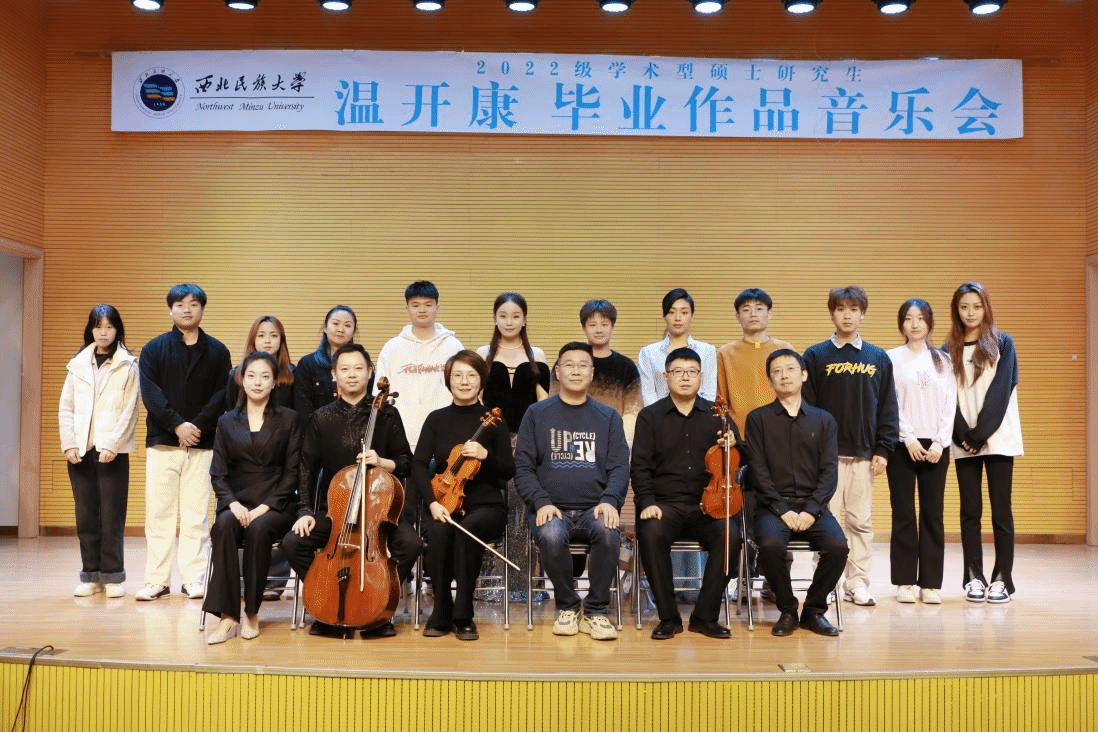 2024年10月23日,2022级学术型硕士研究生温开康举办毕业作品音乐会。本场音乐会历经一小时,演唱(演奏)作品有第一首女高音独唱《凉州馆中与诸判官夜集》、第二首弦乐四重奏《悦动光影》、第三首钢琴独奏套曲《踏夜寻月》、第四首女高音独唱《天下情怀》、第五首弦乐重奏套曲《春遇三吟》、第六首钢琴五重奏《烽火戏舞》。音乐会的评审专家王珊老师、张蕾老师、周丽娟老师,艺术指导刘一芃副教授。主持人邱嘉丽。