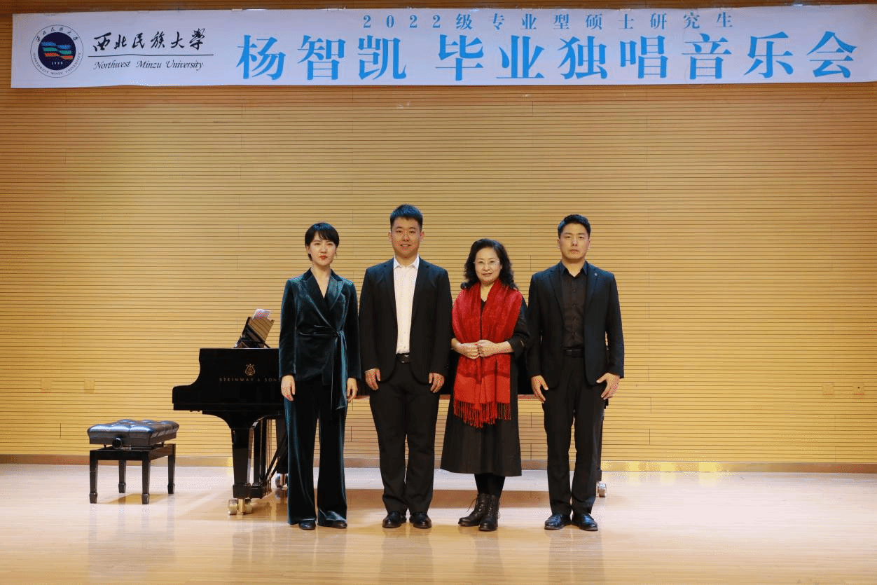 2024年10月29日,2022级专业型硕士研究生杨智凯举办毕业独唱音乐会。整场音乐会历时一个小时。共演唱了《你是我心中的一切》《清流》《归来的星光》《多么可爱,多么美丽》等十二首作品,其中德语作品二首,意大利语作品四首,中国艺术歌曲三首,中国古诗词艺术歌曲二首,创作歌曲一首。本场音乐会艺术指导由张金松老师担任,参加本场音乐会的评委老师有红霞、邢延青、尹辉。李小龙主持。