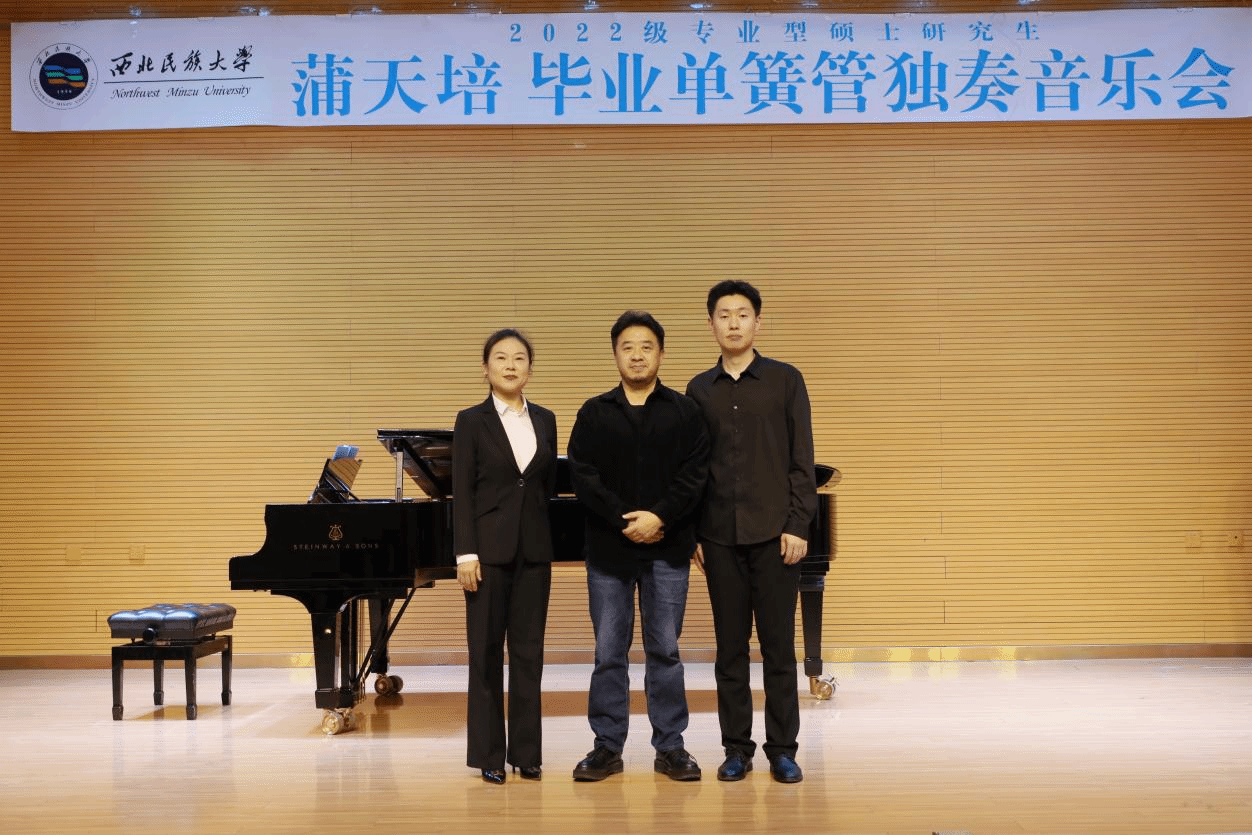 2024年11月4日,2022级专业型硕士研究生蒲天培举办毕业单簧管独奏音乐会。整场音乐会历时1小时、分为上下半场,共演奏勃拉姆斯《F小调单簧管第一奏鸣曲》黄安伦《单簧管随想曲》维克多·巴宾《八首海兰德圆舞曲》。本场音乐会艺术指导由王艳丽老师担任,参加本次音乐会的评委老师有李朝华、刘畅、宁辉。