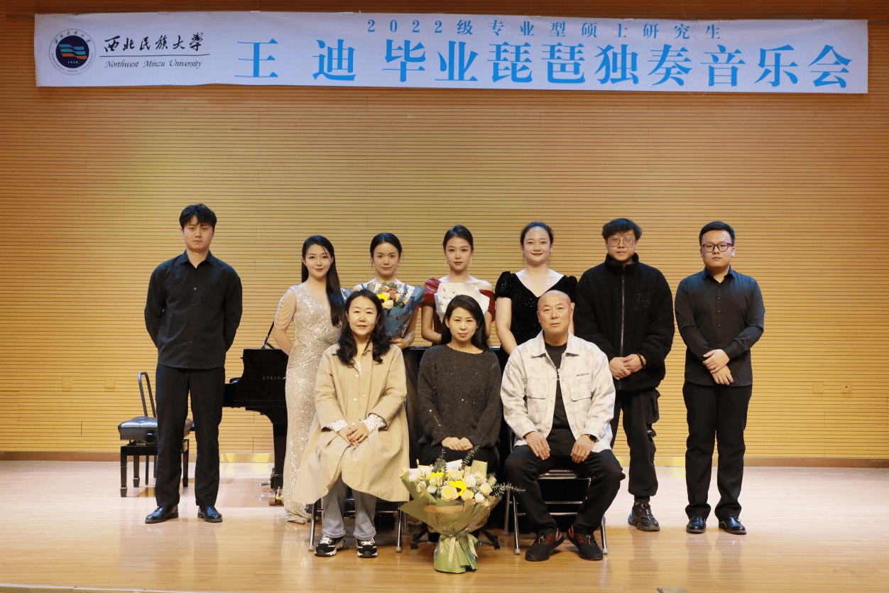2024年10月30日上午10点,2022级专业型硕士研究生王迪成功举办毕业琵琶独奏音乐会。整场音乐会历时一小时,共演奏《云想·花想》《十面埋伏》《凝想·秋思》《楼兰姑娘》四首作品。本场音乐会艺术指导由石子宸担任,主持人任嬿沄。 参加本场音乐会的评委老师有刘慧、东宝吉、阚鹏。