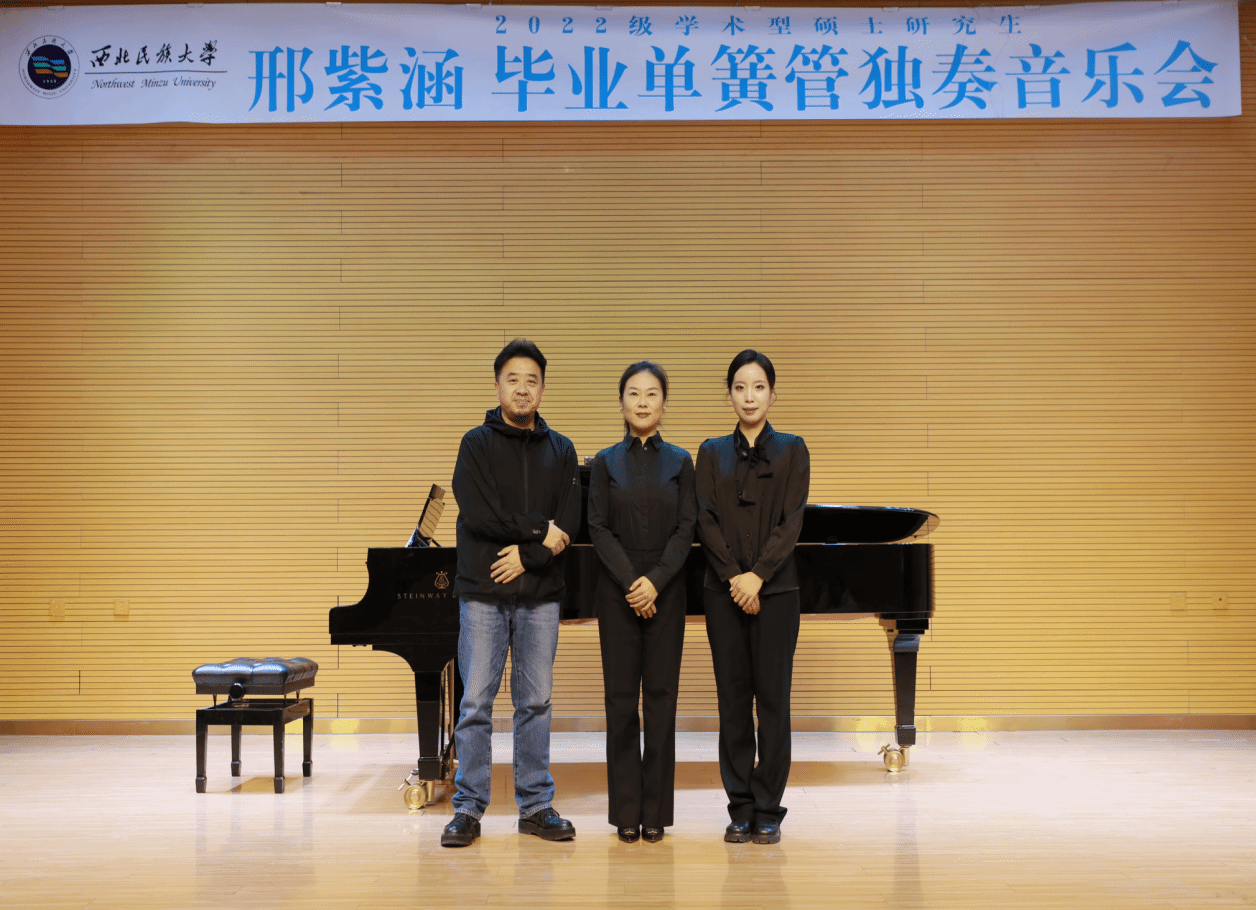 2024年11月18日11:00,2022级学术型硕士研究生邢紫涵成功举办毕业单簧管独奏音乐会。整场音乐会历时1小时,分为上下半场,共演奏了《A大调单簧管协奏曲》一、二、三乐章以及协奏曲《帕米尔之音》一、二、三乐章两首曲目。音乐会艺术指导由王艳丽老师担任,参加本次音乐会的评委老师有杨艳霞、马波、李朝华,主持人为邢佳政。