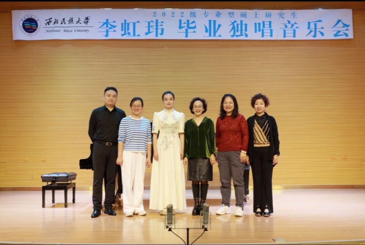 2024年10月11日,2022级专业型硕士研究生李虹玮成功举办毕业独唱音乐会。整场音乐会历时一个小时,共演唱了《月光泪》《帕米尔我的家乡多么美》《母亲教我的歌》《你是安宁》等十二首作品,其中德语作品两首首,意大利语作品三首,捷克语作品首,中国艺术歌曲三首,中国古诗词艺术歌曲三首。本场音乐会艺术指导由张宇轩老师担任,参加本场音乐会的评委老师有常虹,何英琴、杨扬、陈静主持。