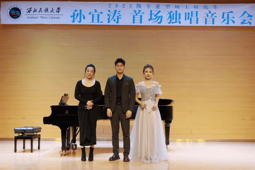 2024年11月11日,2023级专业型硕士研究生孙宜涛成功举办首场独唱音乐会。音乐会历时1小时,演唱《游移的月亮》《恒河上升起了太阳》《在我的心里》《白头吟》《满江红》《越人歌》《我怀着满腔热情》《我亲爱的》《多么幸福能赞美你》《问》《教我如何不想他》《故乡》12首作品。马岚担任艺术指导老师,马睿、黄锦、韩华等3位担任评委。孙彤涓主持。