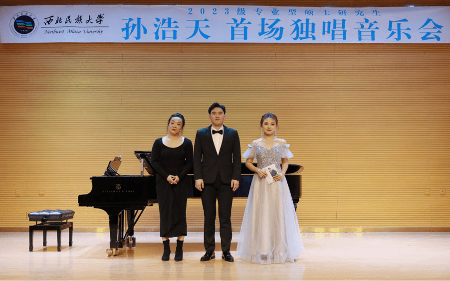 2024年11月11日,2023级专业型硕士研究生孙浩天成功举办首场独唱音乐会。音乐会历时1小时,演唱《在我的心里》《世上没有尤丽狄茜我怎能活》《多么幸福能赞美你》《明亮的窗户》《恒河上升起的太阳》《我的太阳》《越人歌》 《祖国慈祥的母亲》 《虞美人·听雨》《花非花》《在那银色的月光下》《致友人》12首作品。马岚担任艺术指导老师,马睿、黄锦、韩华等3位老师担任评委。孙彤涓主持。
