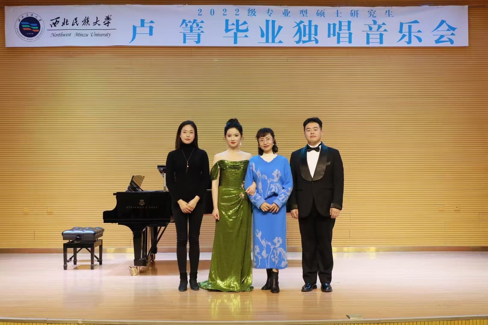 2024年11月1日,2022级专业型硕士研究生卢箐成功举办毕业独唱音乐会。整场音乐会历时一个小时,共演唱了《在我的心里》《年轻姑娘应该懂得》《大雁飞走了》《我爱你中国》等十二首作品,其中意大利语作品六首,中国艺术歌曲两首,中国古诗词艺术歌曲两首,创作歌曲两首。本场音乐会艺术指导由刘一芃老师担任,参加本场音乐会的评委老师有杨扬、常虹、何英琴,康政雄主持。