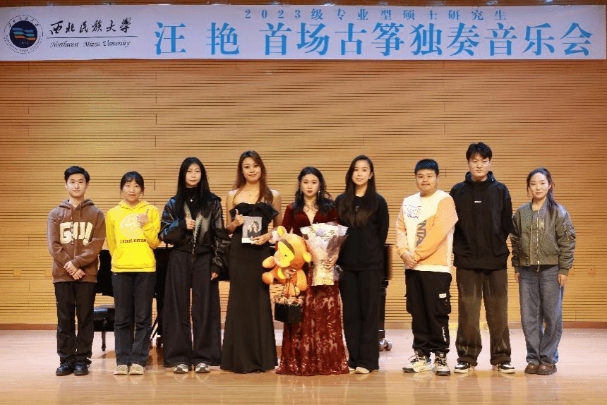 2024年11 月19日,2023级专业型硕士研究生汪艳成功举办首场古筝独奏音乐会。整场音乐会全程 1小时,共演奏四首作品,其中现代筝曲两首《翠语》《溟山》;古筝协奏曲一首《云裳诉》;传统筝曲一首《打雁》。本场音乐会艺术指导由卜文涛老师担任,主持人刘馨璐。郑颖、东保吉、王洁三位老师担任评委。
