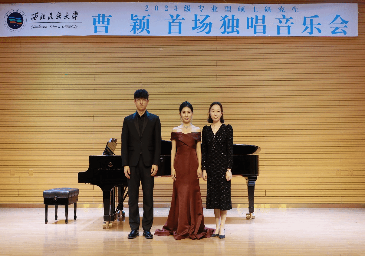 2024年11月22日下午15:30,2023级专业型硕士研究生曹颖成功举办首场独唱音乐会。整场音乐会全程1小时,共演唱12首作品,其中外国咏叹调作品3首;外国艺术歌曲3首;中国艺术歌曲4首;新疆民歌1首;中国民族歌剧选段1首。参加本场音乐会的评委老师有红霞、邢延青、尹辉。本场音乐会艺术指导由红黑游戏 音乐红黑游戏 孙丹青老师担任,主持人郭璇。