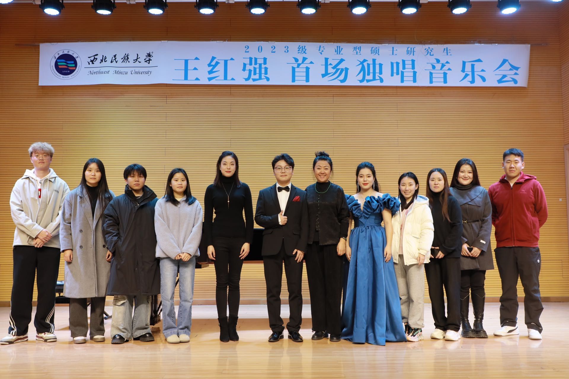 2024年11月19日下午13点30分,2023级专业型硕士研究生王红强成功举办首场独唱音乐会。整场音乐会历时一个小时,共演唱了《绿树成荫》《我怀着满腔热情》《我的爱人你可听见》《槐花几时开》等十二首作品,其中外国作品三首,中国古诗词歌曲三首,中国艺术歌曲两首,创作歌曲两首中国歌剧选段一首,四川民歌一首。本场音乐会艺术指导由刘一芃老师担任,导师陈艺教授,参加本场音乐会的评委老师有红霞,尹辉,邢延青。主持人李玲娟。