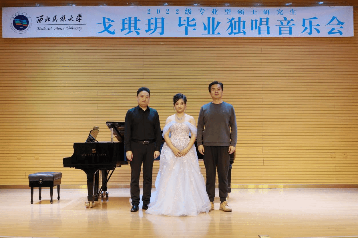 2024年11月8日,2022级专业型硕士研究生戈琪玥成功举办毕业独唱音乐会。整场音乐会历时一个小时,共演唱了《你们可知道》《献词》《沂蒙的女儿》《青玉案元夕》等十二首作品,其中外国作品六首,中国作品六首,涵盖了艺术歌曲、歌剧咏叹调、中国民歌等多种风格形式。本场音乐会艺术指导由张宇轩老师担任,参加本场音乐会的评委老师有马睿、韩华、黄锦,尹桐灵主持。