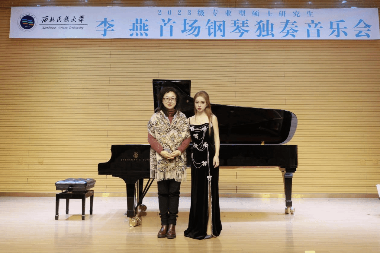 2024年11月28日早上11点00分,2023级专业型硕士研究生李燕成功举办首场钢琴独奏音乐会。整场音乐会历时一个小时,共演奏了德彪西《贝加莫组曲》、拉赫玛尼诺夫《升c小调前奏曲Op.3 No.2》、贝多芬《e小调第27号钢琴奏鸣曲Op.90》、黎英海《夕阳箫鼓》4首作品。本场音乐会导师张栋教授,参加本场音乐会的评委老师有周丽娟、滕丽民、王艺涵;主持人陈含婷。