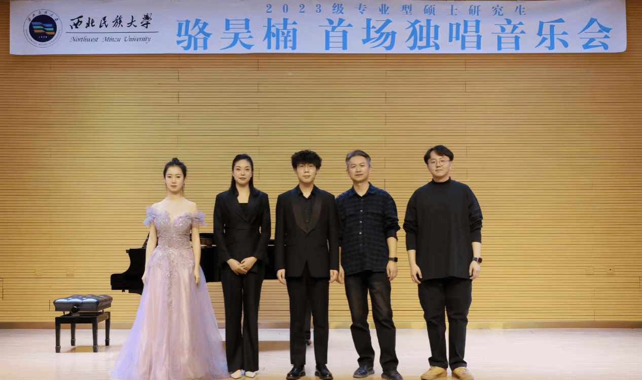 2024年12月3日,2023级专业型硕士研究生骆昊楠成功举办首场独唱音乐会。整场音乐会历时一个小时,共演唱了《晚安》《像天使一样美丽》《想亲娘》《不答应也得答应》等十二首作品,其中中国艺术歌曲4首,外国歌剧选段1首,民族歌剧选段2首,外国艺术歌曲5首。本场音乐会艺术指导由刘一芃老师担任,主持人贾紫岚,参加本场音乐会的评委老师有赵炜民、李凤莲、朱子健。