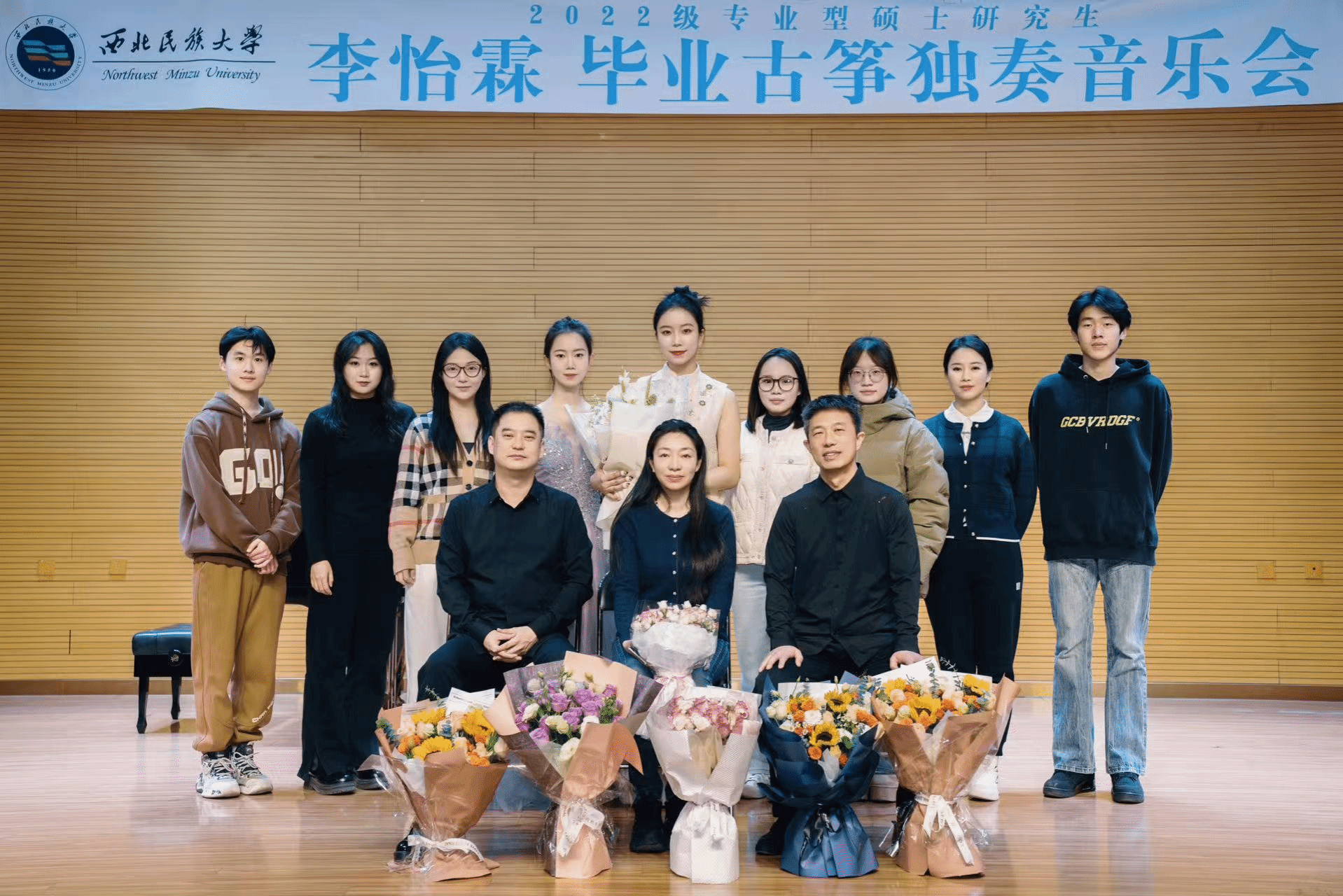 2024年12月4日11:00分,2022级专业型硕士研究生李怡霖成功举办毕业古筝独奏音乐会。整场音乐会进行了一个小时,共演奏了4首作品,西域风格筝曲《大漠行》 潮州筝曲《出水莲》 古筝协奏曲《水墨丹青》 河南筝曲《汉江韵》。本场音乐会的艺术指导由卜文涛老师和王玺老师担任,主持人贾紫岚。参加本场音乐会的评委老师有郑颖老师,王洁老师,阚鹏老师。