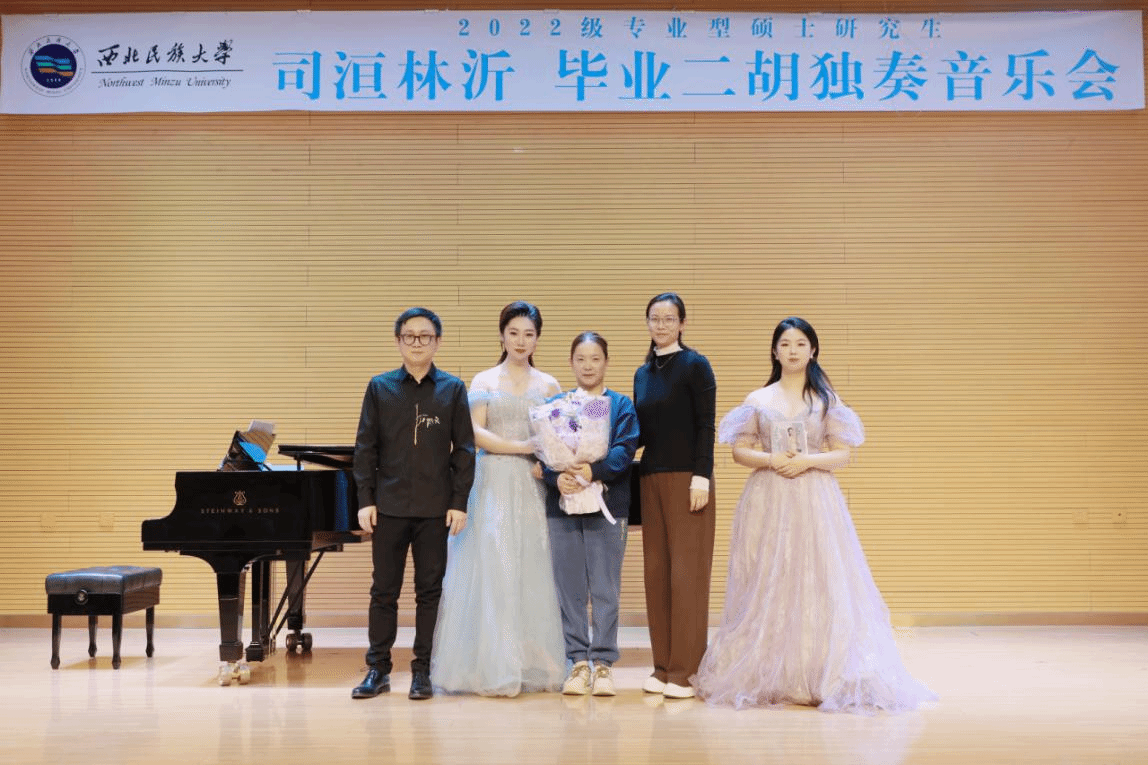 2024年11月20日上午11点,2022级专业型硕士研究生司洹林沂成功举办毕业二胡独奏音乐会。整场音乐会历时一小时,共演奏《豫北叙事曲》《长城随想一、二乐章》《楚颂》《弦歌吟》四首作品。本场音乐会艺术指导由史洋老师担任,主持人刘悦丽;参加本场音乐会的评委老师有管民、阚鹏、王洁。