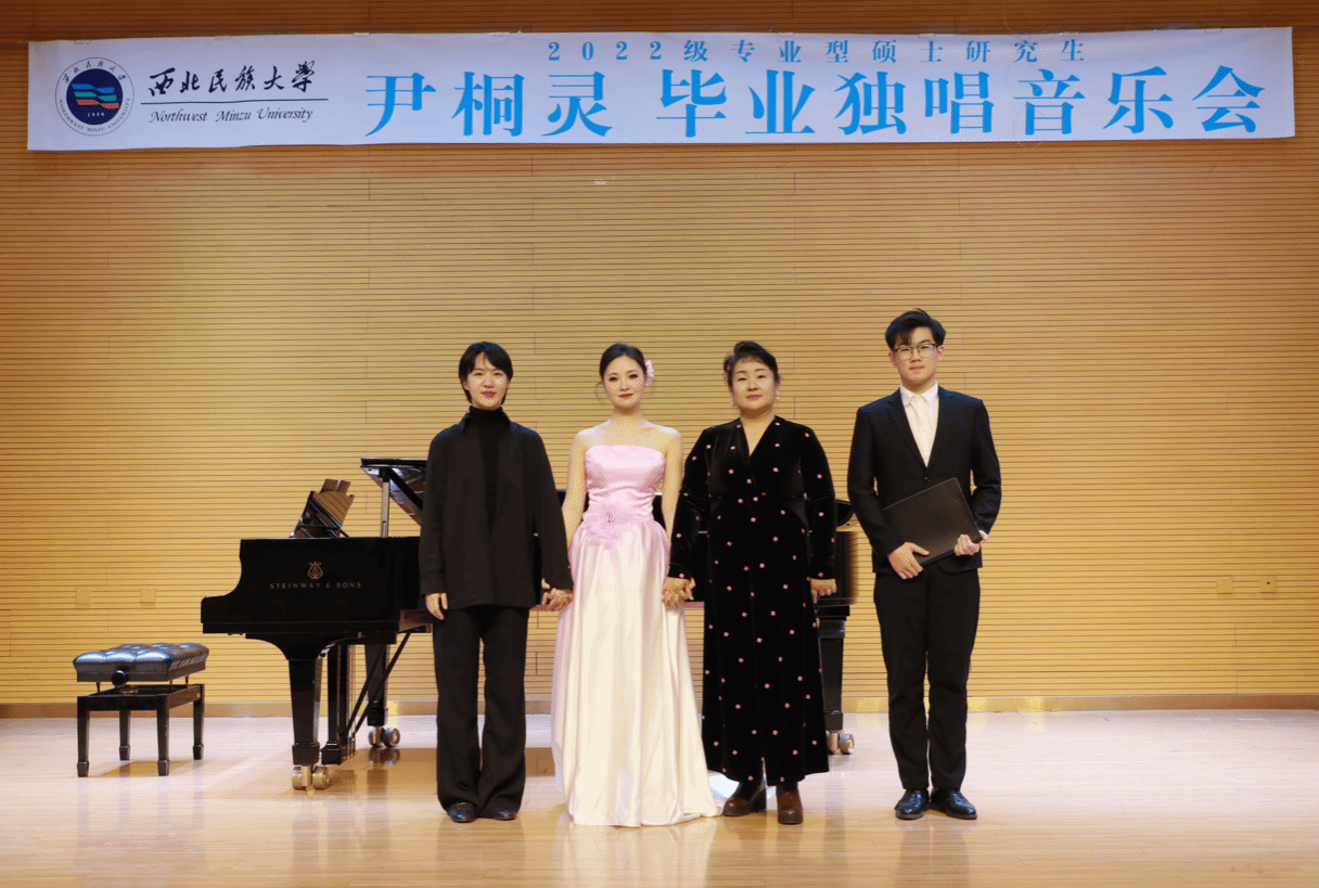 2024年11月12日下午17:00,2022级专业型硕士研究生尹桐灵成功举办毕业独唱音乐会。整场音乐会历时一个小时。共演唱了《你就会看到》《Memory》《崖畔上酸枣红艳艳》《我渴望遇见你》等十二首作品,其中国外歌曲两首,中国古诗词艺术歌曲三首,创作歌曲三首,新编民歌四首。 本场音乐会艺术指导由张金松老师担任,参加本场音乐会的评委老师有赵炜民、朱子健、李凤莲,宋政达主持。