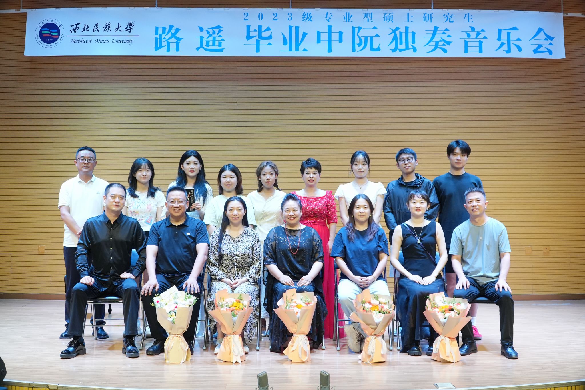 7月11日上午10点30分,2023级专业型硕士研究生路遥成功举办毕业中阮独奏音乐会。 整场音乐会历时一小时,共演奏《火把节之夜》《山韵》之二·涧、《蓝关雪》《剑器》《满江红》五首作品。 本场音乐会艺术指导由王玺、卜文涛老师担任,参加本场音乐会的评委老师有郑颖、刘慧、管民,曹雪妮主持。