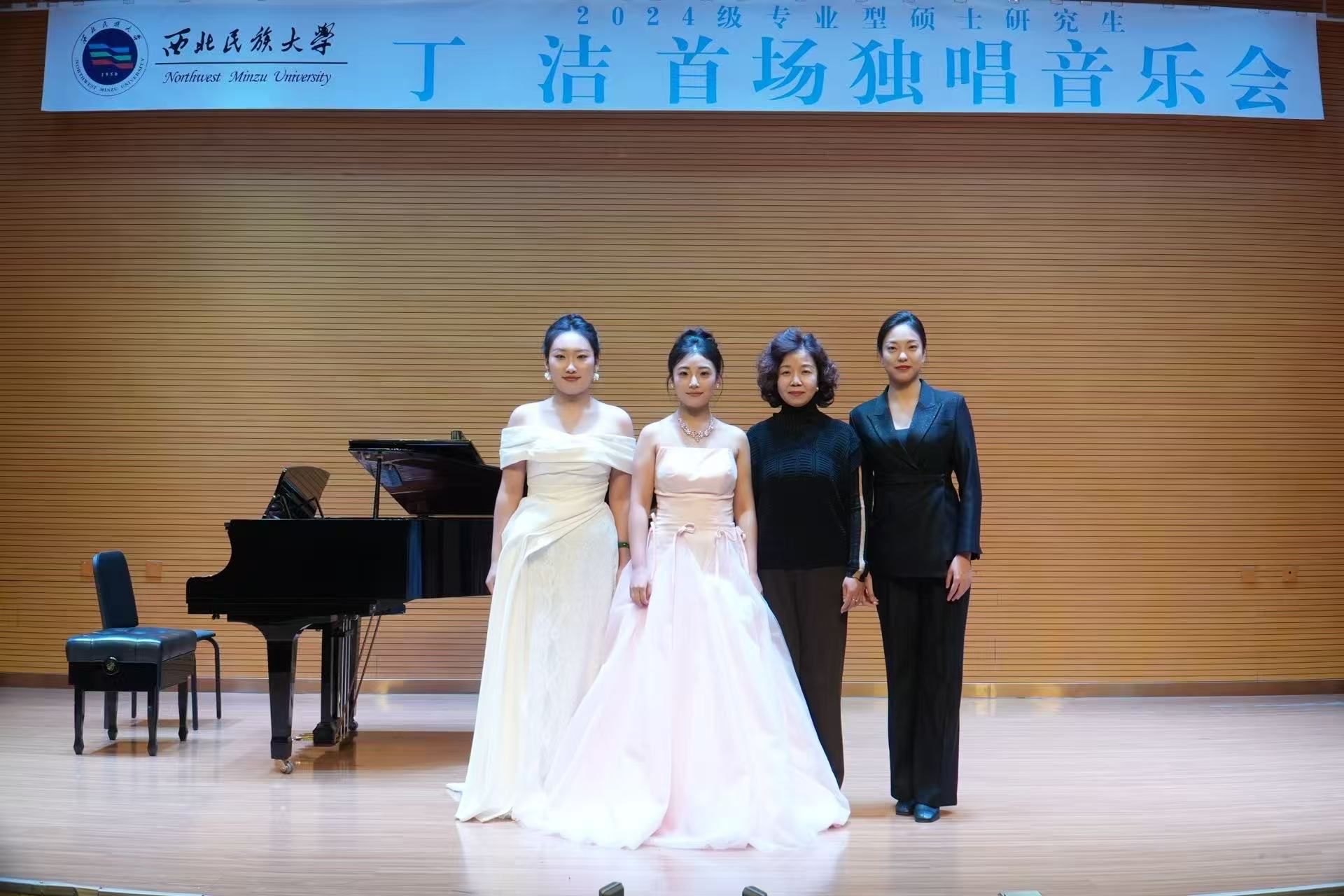 2025年10月20日下午5点,2024级专业型硕士研究生丁洁成功举办首场独唱音乐会。 整场音乐会进行了约一个小时,共演唱了十二首作品,分别是:《九月》《安睡》《献词》《致克罗埃》《我的灵魂随风飘扬》《年轻姑娘应该懂得》《怀念曲》《钗头凤》《秋:帕米尔-我的家乡多么美》《何年何日再相逢》《幽兰操》《念奴娇·赤壁怀古》。 音乐会艺术指导刘一芃老师,主持人黄霜雨。参加本场音乐会的评委老师有红霞、尹辉、邢延青。