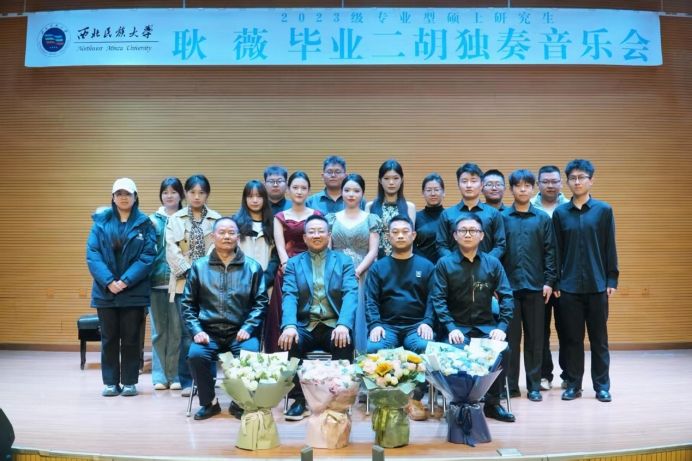 2025年10月28日上午10点,2023级专业型硕士研究生耿薇成功举办毕业二胡独奏音乐会。 整场音乐会全程1小时,共演奏六首作品。其中传统作品1首:《听松》(必奏曲目);二胡重奏作品1首:《阿里山的姑娘》;二胡风格性作品4首:《丰收》《塞上春光》《渭北抒情》《弦意岭南》。 本场音乐会艺术指导史洋老师,主持人彭瑞圆。东保吉老师、刘慧老师、阚鹏老师担任评委。