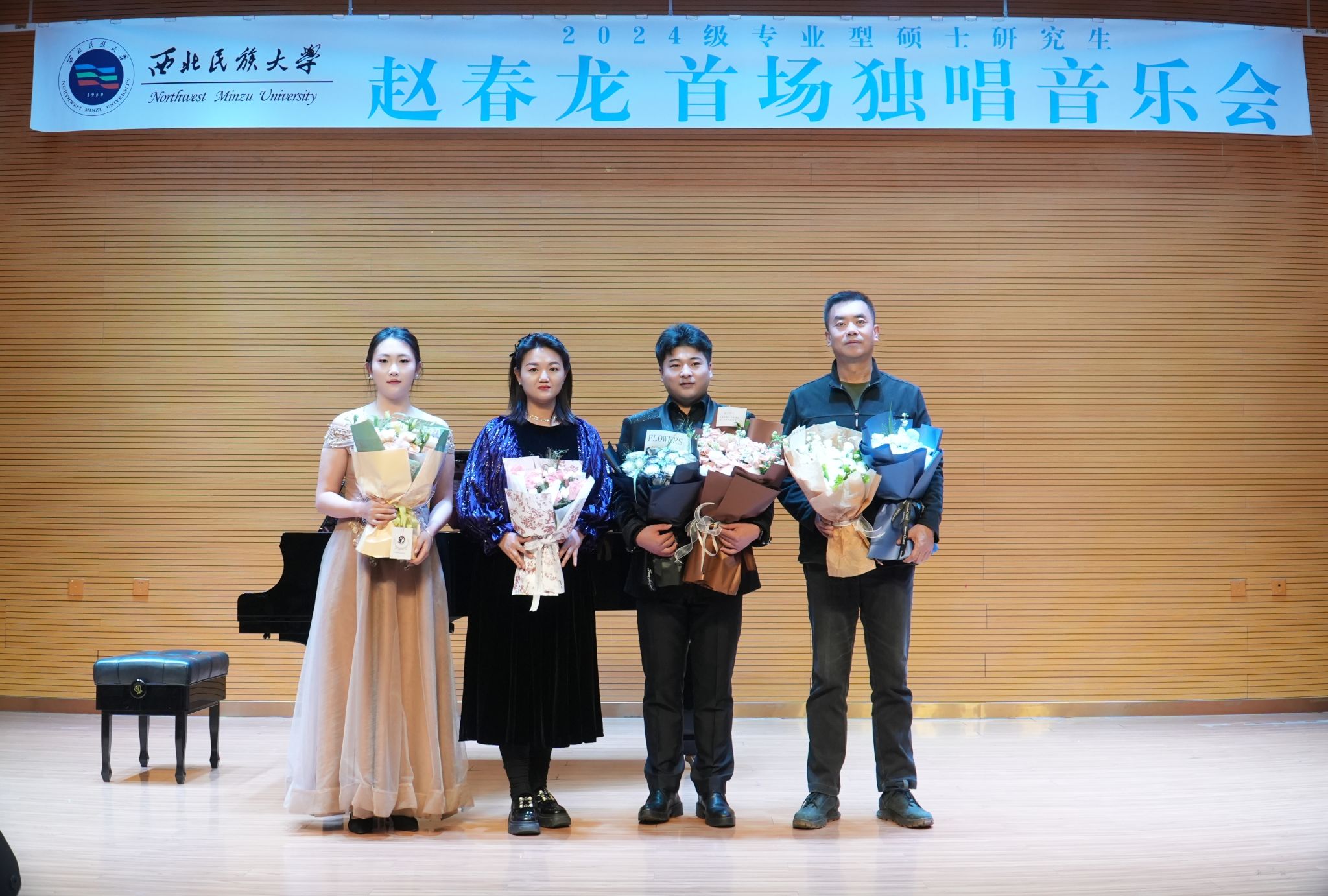 2025年10月27日17:00,2024级专业型硕士研究生赵春龙成功举办首场独唱音乐会。 整场音乐会进行了约一个小时,共演唱了十二首作品,其中五首外国作品:《我亲爱的》《天神赐粮》《请你别忘了我》《虽然你冷酷无情》《你是我心中的一切》;七首中国作品:《最后一个梦》《怀念曲》《思乡曲》《送上我心头的思念》《山之高》《花非花》《鸿雁》。 本场音乐会艺术指导由兰州财经大学音乐系陈华老师担任,主持人罗亚兰。担任本场音乐会的评委老师为常虹、何英琴、杨扬。