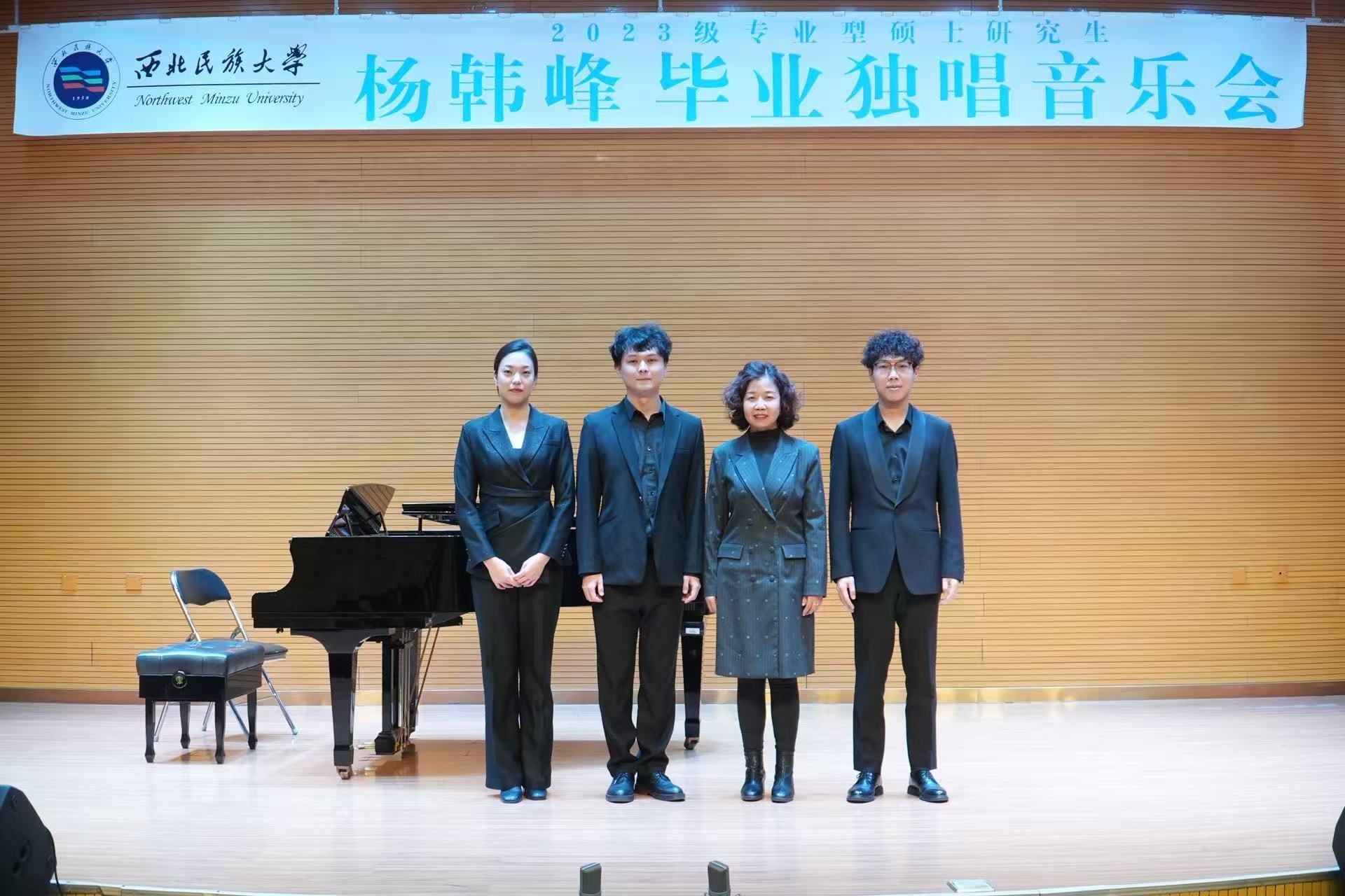 2025年10月31日下午2点,2023级专业型硕士研究生杨韩峰成功举办毕业独唱音乐会。 整场音乐会进行了约一个小时,共演唱了十二首作品,分别是:声乐套曲《冬之旅》六首,《像天使一样美丽》《春思曲》《不答应也得答应》《思乡》《相思》《忆秦娥·恒山月》。 本场音乐会艺术指导由刘一芃老师担任,主持人骆昊楠。