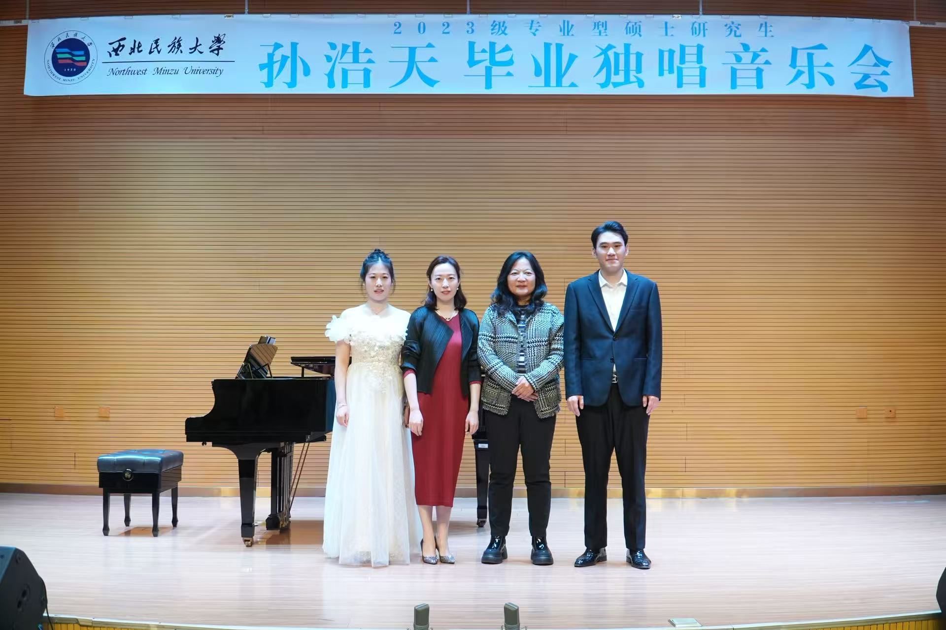 2025年10月31日15:30,2023级专业型硕士研究生孙浩天成功举办毕业独唱音乐会。 整场音乐会进行了约一个小时,共演唱了十二首作品,分别是:《问》《乡谣》《槐花几时开》《那就是我》《青玉案·元夕》《江城子·乙卯正月二十日夜记梦》《我心里不再感到青春火焰燃烧》《游移的月亮》《偷洒一滴泪》《请别忘了我》《她显得太可爱》《妈妈》。 本场音乐会艺术指导由孙丹青老师担任,主持人张长艳。