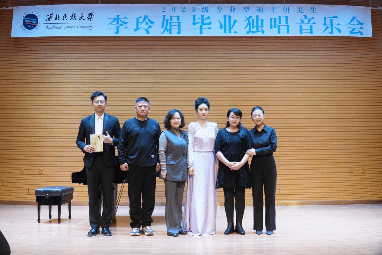 2025年10月5日下午2点,2023级专业型硕士研究生李玲娟成功举办毕业独唱音乐会。 参加本场音乐会的评委老师有张鹏远老师、马睿老师、王茜燕老师。整场音乐会历时一个小时,共演唱了《亲切的平静》《小蝴蝶》《溜溜的竹排溜溜的漂》《雷火中的笑容》等十二首作品,其中外国作品三首,必唱曲目两首,论文曲目一首,近现代创作歌曲三首,地方民歌三首。 本场音乐会艺术指导由王艳丽老师担任,主持人郭璇。