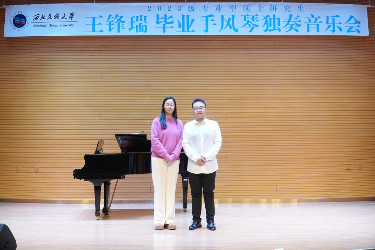 2025年11月6日上午11点,2023级专业型硕士研究生王锋瑞成功举办毕业手风琴独奏音乐会。 整场音乐会将近一个小时,共演奏了《A大调奏鸣曲》《e小调前奏曲与赋格BWV879》《保加利亚组曲》《探戈托卡塔》《comaster》《布宜诺斯艾利斯-冬季》六首作品,其中独奏曲四首,室内乐作品两首。 本场音乐会特邀嘉宾王薇娜老师、黄祎白老师、张珊珊老师和刘欣雨同学。参加本场音乐会的评委有滕丽民、孟玫、刘一芃。