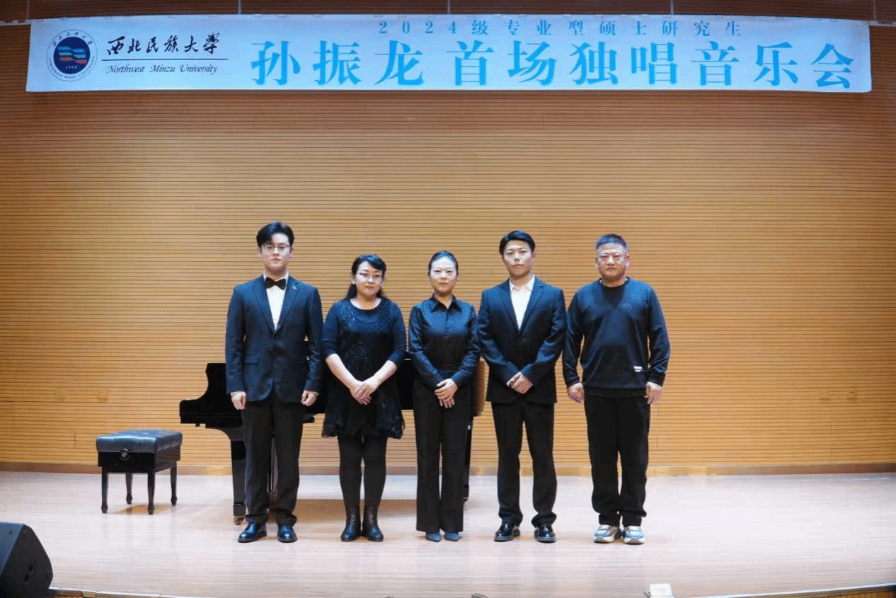 2025年11月05日15:30,2024级专业型硕士研究生孙振龙成功举办首场独唱音乐会。 整场音乐会历时一个小时,共唱了《友善的森林》《恒河上升起太阳》《我亲爱的》《别再使我痛苦迷惘》《游移的月亮》《多么幸福能赞美你》等十二首作品,其中外国作品六首:两首歌剧咏叹调、4首艺术歌曲;中国作品:古诗词艺术歌曲五首、创作歌曲一首。 本次音乐会艺术指导由王艳丽老师担任,主持人李禹封。参加本场音乐会的评委老师有马睿,张鹏远,王茜燕。