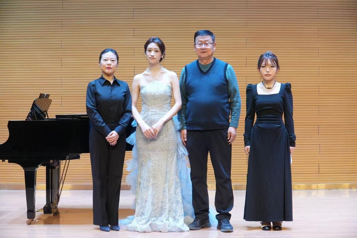 2025年11月21日11:00,2023级专业型硕士研究生宋盼盼成功举办毕业独唱音乐会。 参加本场音乐会的评委老师有张鹏远,马睿,王茜燕。整场音乐会历时一个小时,共唱了《在我的心里》《让我痛哭吧》《小夜曲》《家》《念奴娇赤壁怀古》等十二首作品,其中外国作品三首,外国歌剧选段一首,中国作品中小曲一首、艺术歌曲八首。 本次音乐会艺术指导由王艳丽老师担任,主持人唐安雯。